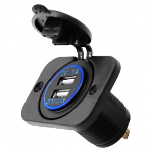 Power Outlet supporting dual USB ports, the 12/24 volt USB outlet